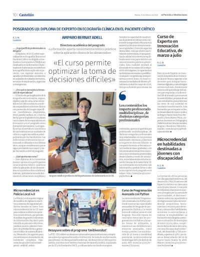 La Universitat Jaume I ha iniciado en febrero el Diploma de Especialización en Microbiología, Citogenética, Hematología, Oncohematología, Biopatología Molecular e Instrumentación del Laboratorio Clínico, una formación avanzada integrada en el Máster de Formación Permanente en Técnicas Analíticas del Laboratorio Clínico.