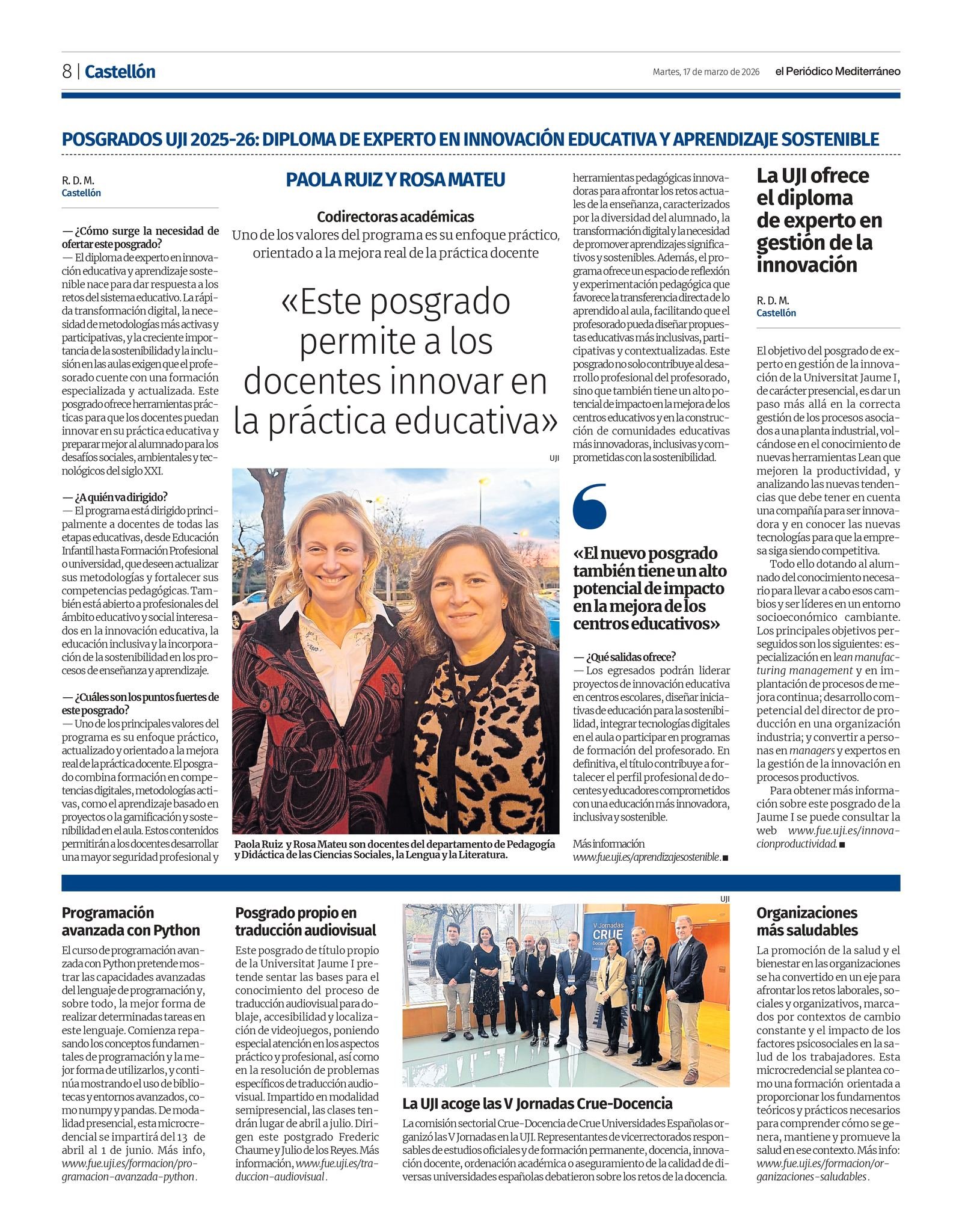La FUE-UJI es la encargada de gestionar esta formación. El contenido completo de la entrevista puede consultarse